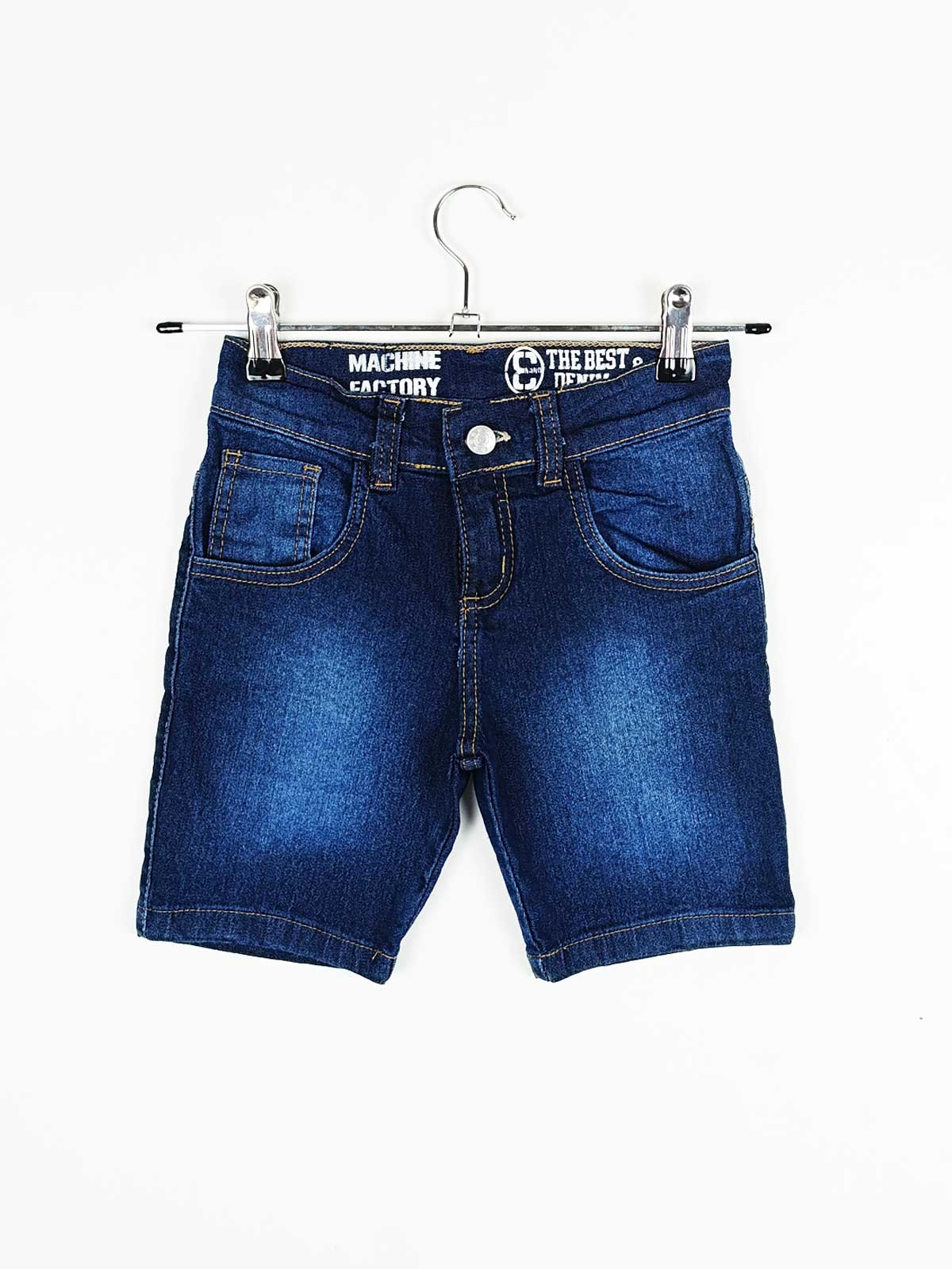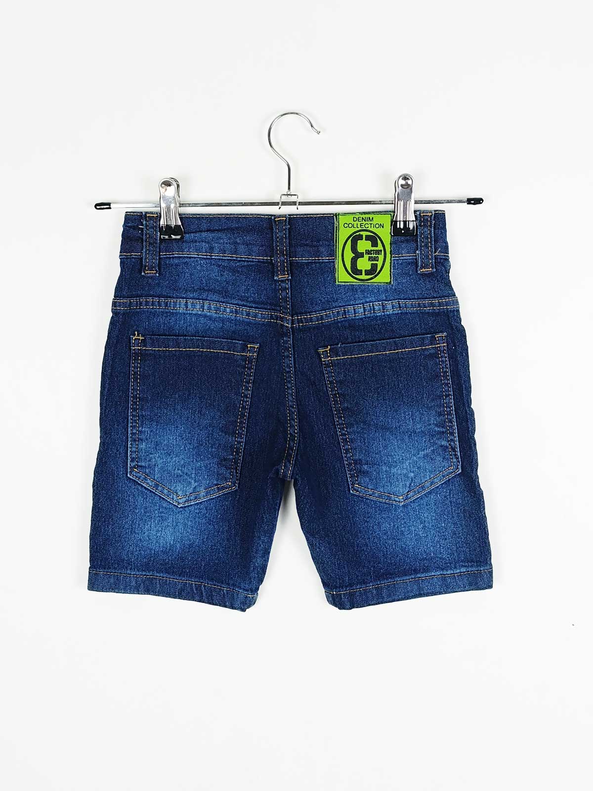 Bermuda denim elastizado localizada con costura reforzada.
